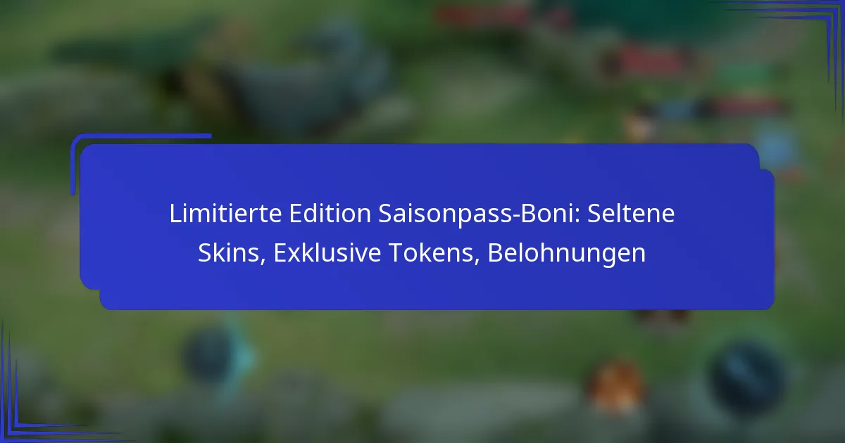 Limitierte Saisonpass-Boni sind exklusive Belohnungen, die Spielern angeboten werden, die einen Saisonpass für eine bestimmte Spielsaison erwerben. Diese Boni umfassen typischerweise seltene Skins, einzigartige Tokens und andere In-Game-Belohnungen, die das gesamte Spielerlebnis verbessern.